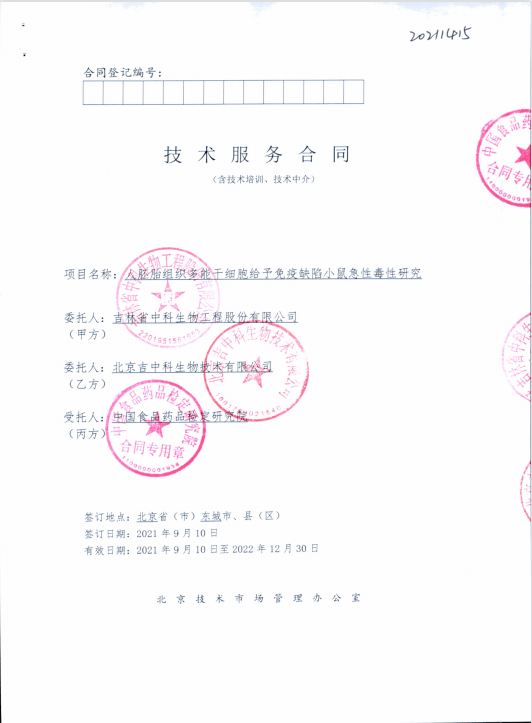 2021年9月10日,中國(guó)食品藥品檢定研究院對(duì)吉林中科生物工程股份有限公司的人胚胎組織多能干細(xì)胞進(jìn)行急性毒性評(píng)價(jià)!