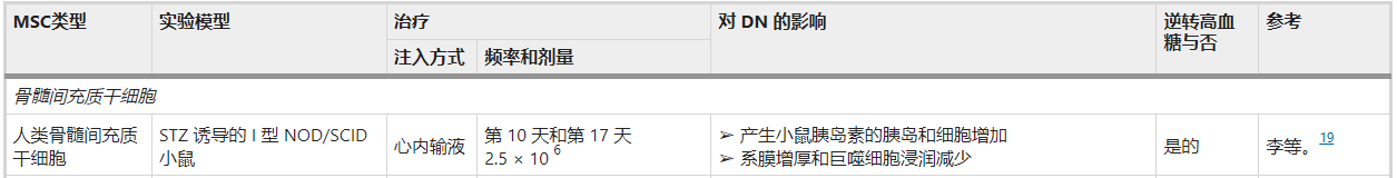 - 同種異體BM-MSCs植入已用于治療糖尿病腎病的臨床試驗。
