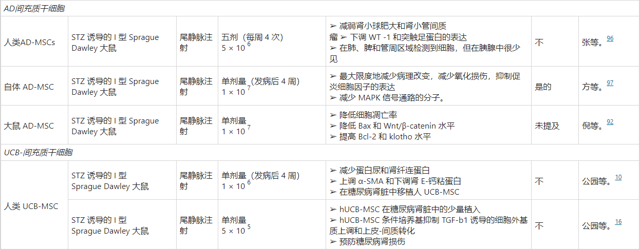 - 來自骨髓、脂肪組織和臍帶血的間充質(zhì)干細胞在糖尿病腎病體內(nèi)和體外都得到了廣泛研究。