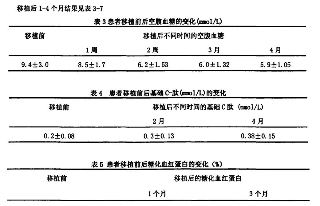 受試者空腹血糖由9.4(均值)降至5.9(均值),基礎(chǔ)C肽有所上升。