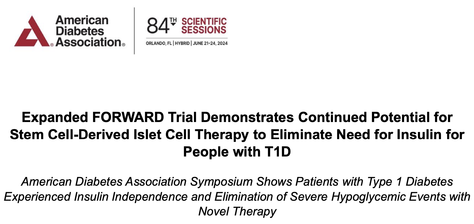 2024年,在美國糖尿病協會第84屆科學會議上,一項關于干細胞療法治療1型糖尿病的臨床研究取得積極結果,數據顯示:接受全劑量VX-880單次輸注的12名患者,在第90天時顯示出胰島細胞移植和葡萄糖反應胰島素的產生,HbA1c降至7%以下,并達到TIR>70%目標。隨訪一年后,3名患者的HbA1c<7.0%,且無嚴重低血糖事件。
