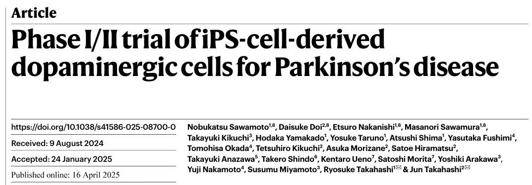 2025年4月19日,京都大學醫院和日本iPS細胞研究與應用中心(CiRA)最近開展的一項1/2期臨床試驗,其自主研發的多巴胺能祖細胞取得了積極成果。