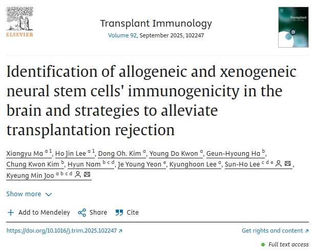 近日 ,國際權(quán)威期刊雜志《Transplant Immunology》發(fā)表了一項“在腦內(nèi)鑒定同種異體及異種神經(jīng)干細(xì)胞的免疫原性以及減輕移植排斥的策略”的研究[1]。