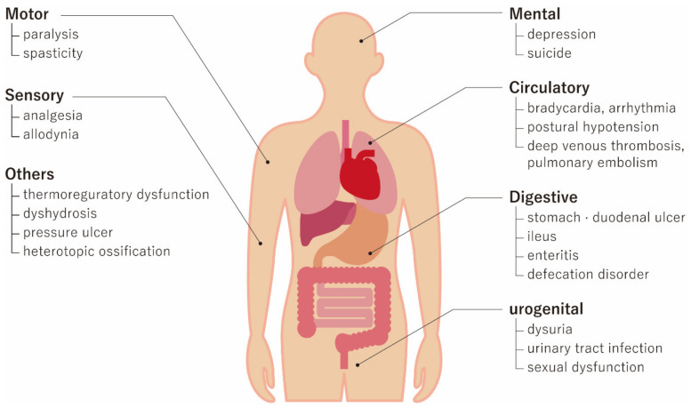 圖1:脊髓損傷 (SCI) 后的系統性醫療問題。