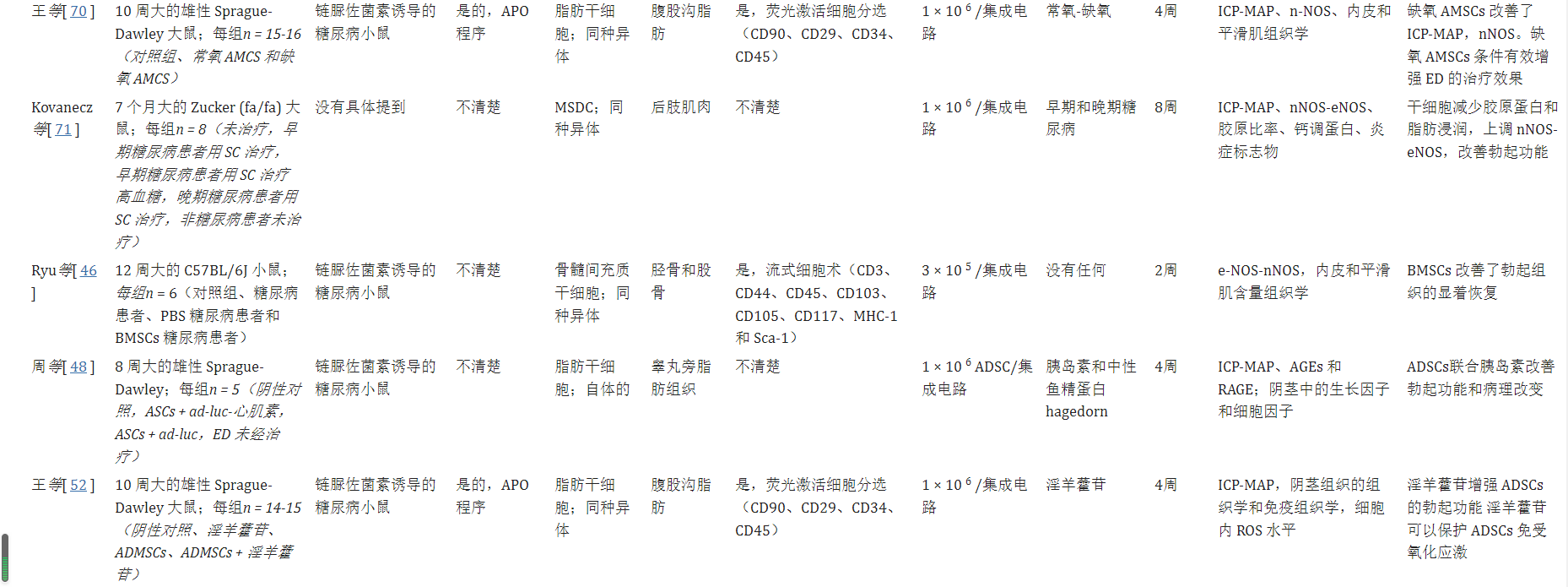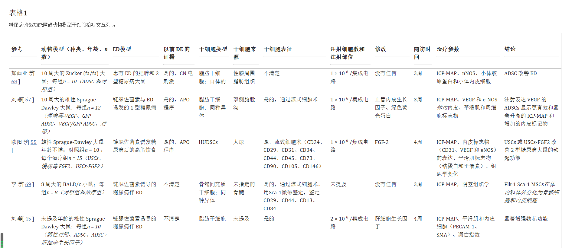 自2000年代以來,就一直在開展ED病例的干細胞研究。然而,大多數研究僅限于實驗動物。在本文回顧的 25項研究中,我們發現其中21項是在動物身上進行的(表1) 和四個關于人類的 (表2)。