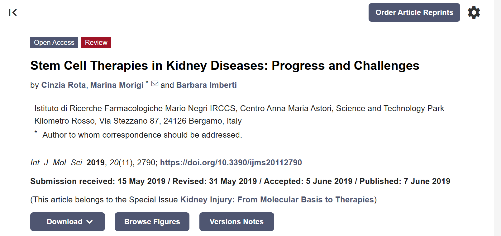 [1]Rota, C.; Morigi, M.; Imberti, B. Stem Cell Therapies in Kidney Diseases: Progress and Challenges.?Int. J. Mol. Sci.?2019,?20, 2790. https://doi.org/10.3390/ijms20112790