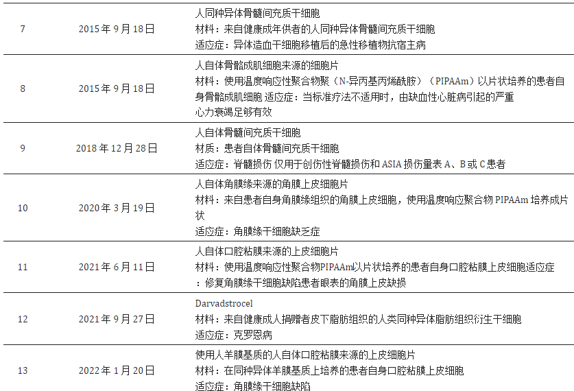 2013年日本先后頒布了《促進再生醫療安全并迅速推進法》、《再生醫療安全確保法》和《醫藥品和醫療器械質量、有效性及安全性確保法》,大大縮短了再生醫療產品的審批時間,使日本成為最早將干細胞等再生醫療技術用于臨床的國家。