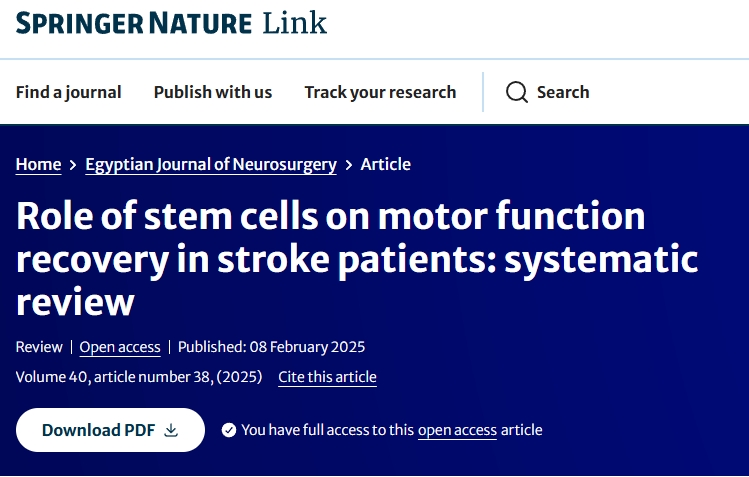 近日,國際期刊雜志《?Egyptian Journal of Neurosurgery》發表了一篇“Role of stem cells on motor function recovery in stroke patients: systematic review”的臨床研究綜述,該綜述旨在進行全面的系統評價和薈萃分析,以評估皮下注射對中風運動恢復的治療潛力。