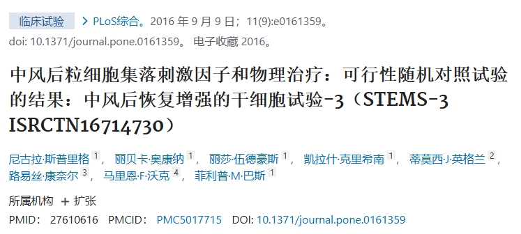 臨床案例五:2016年,Sprigg等人進行了一項前瞻性隨機安慰劑對照試驗,納入了118名潛在患者,其中包括60名卒中史為3個月至2年的成年人。作者評估了單獨和聯合使用 G-CSF(非格司亭)和康復治療對卒中恢復的影響。