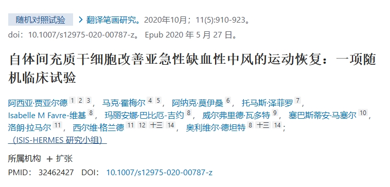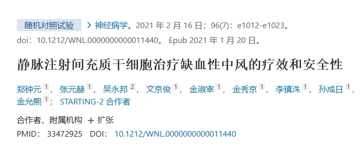臨床案例一:2021年,期刊雜志《神經病學》發表了一篇“靜脈間充質干細胞治療缺血性卒中的療效和安全性”臨床研究文章。