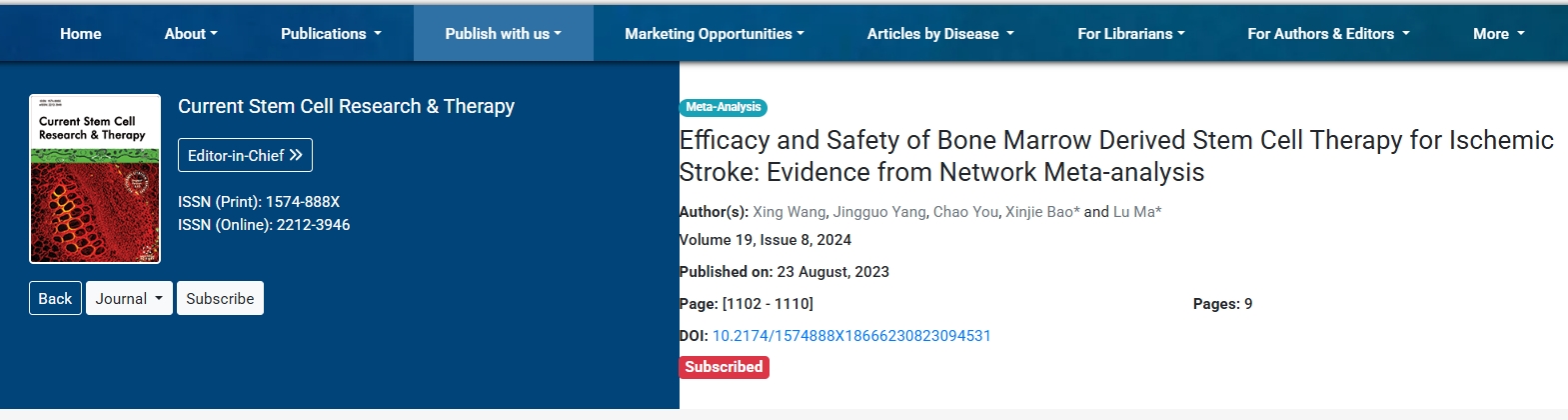 由于目前,有數種類型的干細胞可用于治療中風患者。然而,最佳干細胞類型仍不清楚。為此,四川大學華西醫院神經外科聯合北京協和醫院神經外科開了一項評估骨髓干細胞治療缺血性卒中的療效和安全性的臨床試驗。該項臨床試驗發表在期刊雜志《Current Stem Cell Research&Therapy》上。