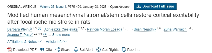 [2]Modified human mesenchymal stromal/stem cells restore cortical excitability after focal ischemic stroke in ratsKlein, Barbara et al.Molecular Therapy, Volume 33, Issue 1, 375 – 400