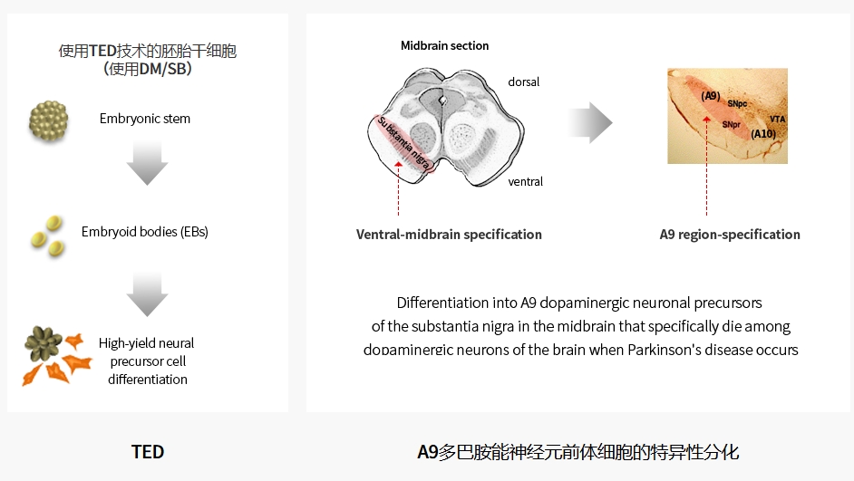 A9-DPC (TED-A9):源自hESC的腹側(cè)中腦特異性多巴胺能祖細(xì)胞,用于治療帕金森病(1/2a期)