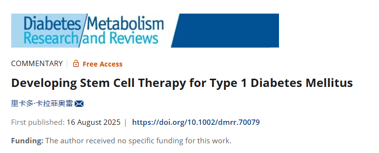 在這一背景下,國際著名期刊《糖尿病/代謝研究》近期刊發的”正在開發治療1型糖尿病的干細胞療法”研究綜述指出,人類干細胞因其供應幾乎無限且具備分化潛力,被視為重要解決方案[1]