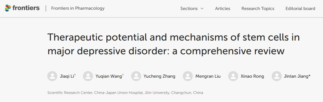 進一步支持這一方向的是,2024年11月25日,吉林大學中日聯誼醫院科研中心在《藥理學前沿》雜志發表了一篇題為“干細胞在重度抑郁癥中的治療潛力和機制:綜合綜述”的研究綜述。