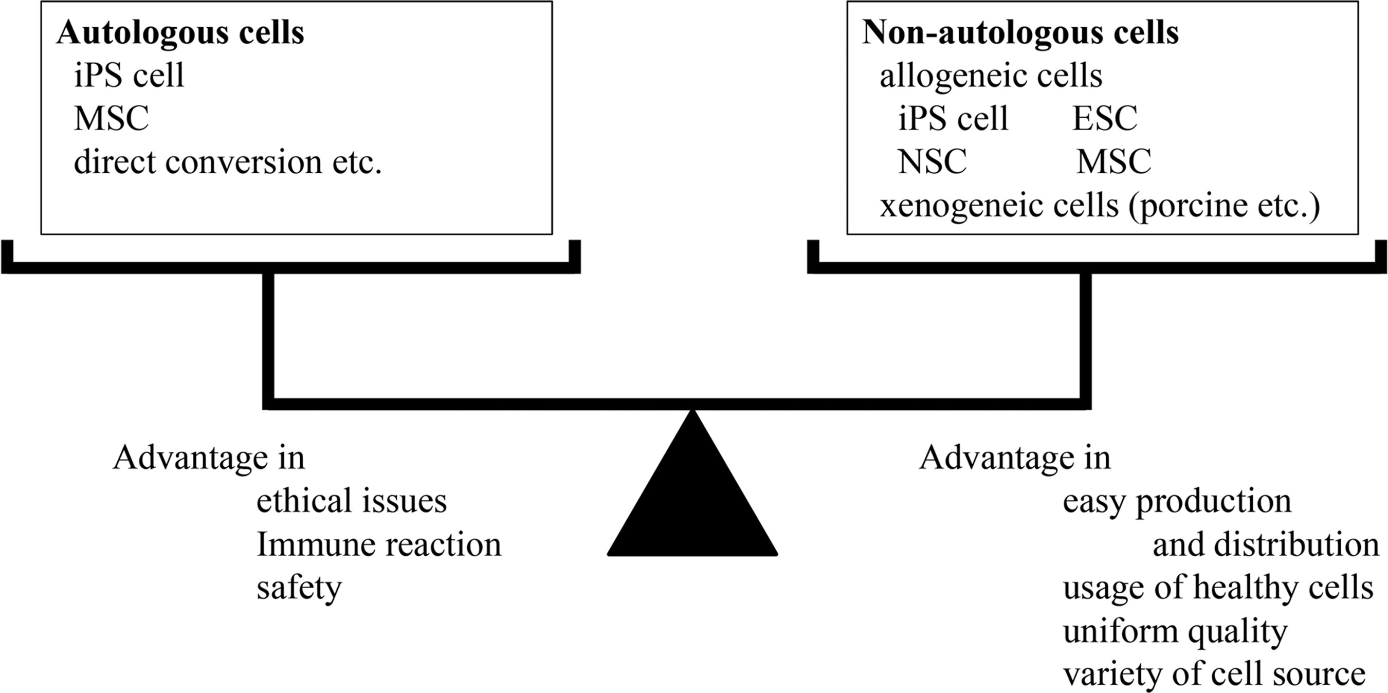 自體細胞可以在幾乎沒有倫理問題的情況下使用,并且不需要免疫抑制,而非自體細胞可以像藥物一樣生產并提供統一的質量。