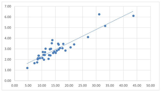 圖2:治療前空腹胰島素與C肽的散點圖。