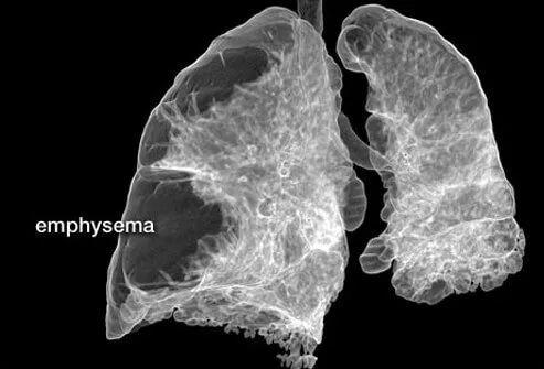 肺氣腫是一種肺部疾病。在肺氣腫中,肺泡(肺中促進二氧化碳和氧氣交換的小氣囊)受損并死亡。二氧化碳和氧氣沒有交換,最終肺泡死亡,在肺部留下空洞,導致肺組織丟失和 COPD 癥狀加重。肺氣腫的癥狀通常包括呼吸急促,有時還包括咳嗽和喘息。肺氣腫的治療可能包括支氣管擴張藥物、類固醇、抗生素和氧氣。強烈建議戒煙。