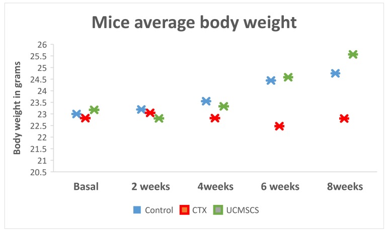 材料和方法:一項(xiàng)臨床前小鼠病例與載體對(duì)照隨機(jī)研究。三組中的每組都同時(shí)進(jìn)行了兩個(gè)實(shí)驗(yàn)。首先是證明UCMSCs恢復(fù)卵巢功能的能力。第二個(gè)是證明提高生育能力。總共36只小鼠被隨機(jī)分配;6只小鼠分成3組,每組進(jìn)行2次實(shí)驗(yàn)。第1組(對(duì)照組)、第2組(假化療)、第3組(干細(xì)胞)。