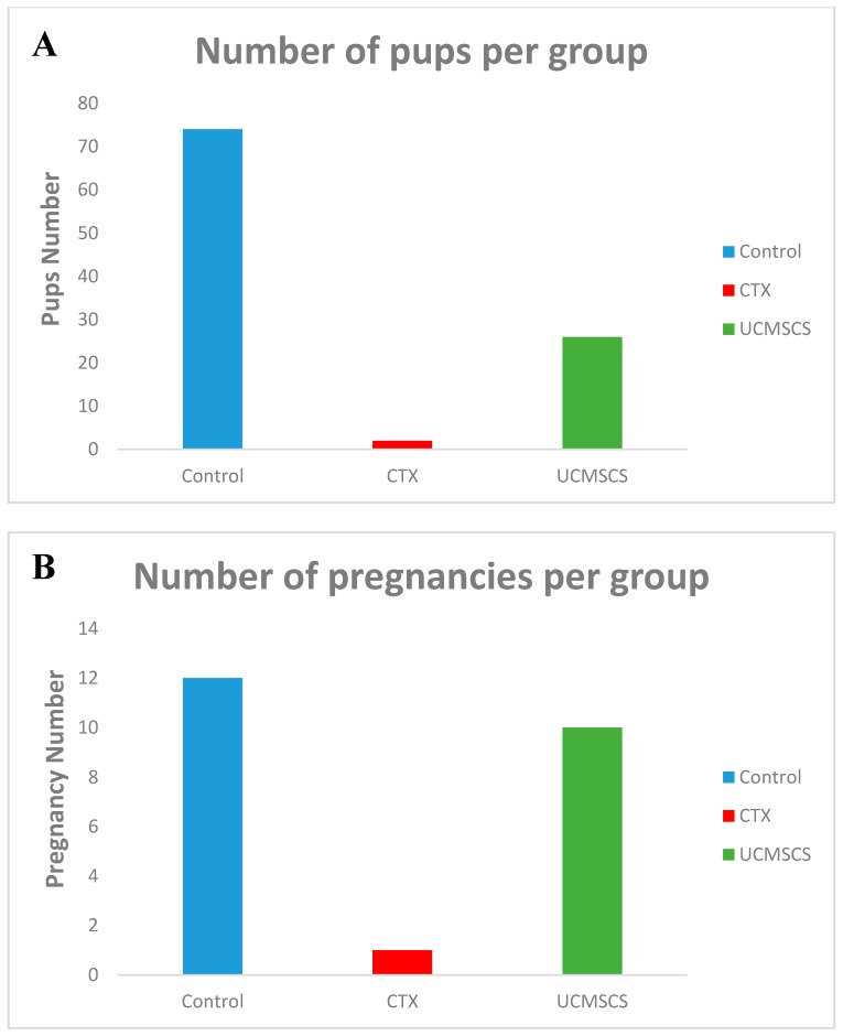 (C)和(D)UCMSCS組表現(xiàn)出統(tǒng)計(jì)學(xué)顯著性數(shù)據(jù),p<0.05對(duì)于兩者,小鼠懷孕的次數(shù)以及產(chǎn)生的幼崽數(shù)量依次為。