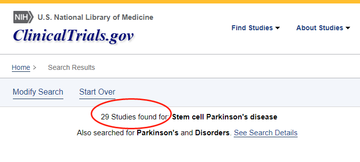 截止2023年2月,在美國國立衛(wèi)生研究院的最大臨床試驗注冊庫clinicaltrials.gov網(wǎng)站上注冊的有關干細胞移植治療帕金森病的臨床研究項目有29項,其中中國有7項。所涉及干細胞類型有神經干細胞、骨髓干細胞、臍帶間充質干細胞等,其中有些項目已經完成,有些正在招募。